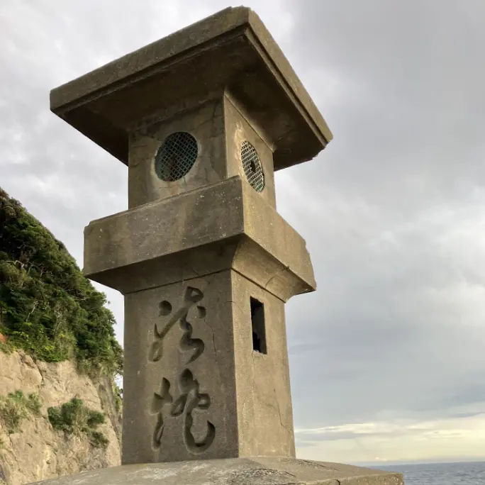 崖と海をバックにしたこの灯篭はどこにあるでしょう?ヒントは南西…(小声)